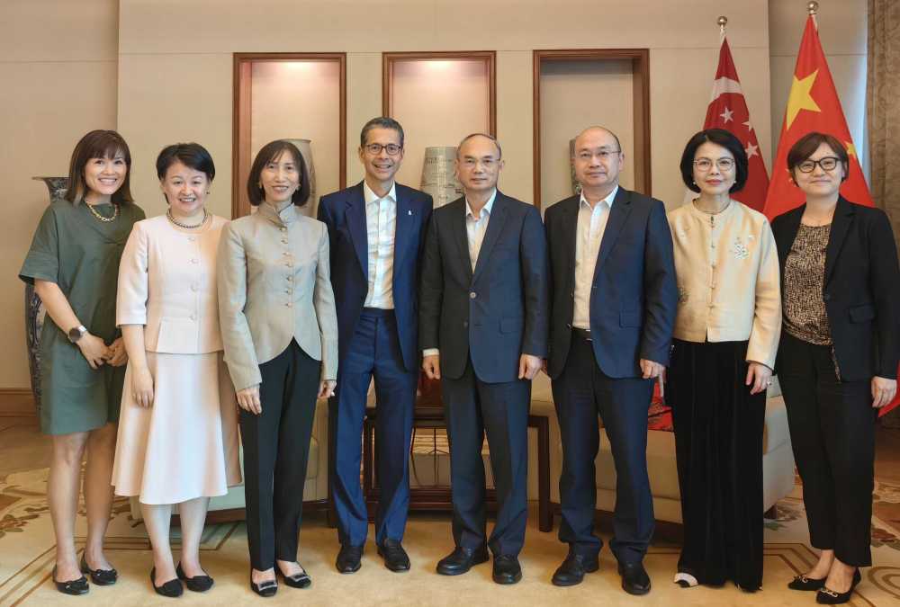 AseanAll /东盟全景讯 中国驻新加坡大使馆消息,2025年9月16日,中国驻新加坡大使曹忠明在使馆会见渣打银行新加坡及东盟地区CEO李福祐(Patrick Lee)一行。中国使馆公参宗长青陪同会见。