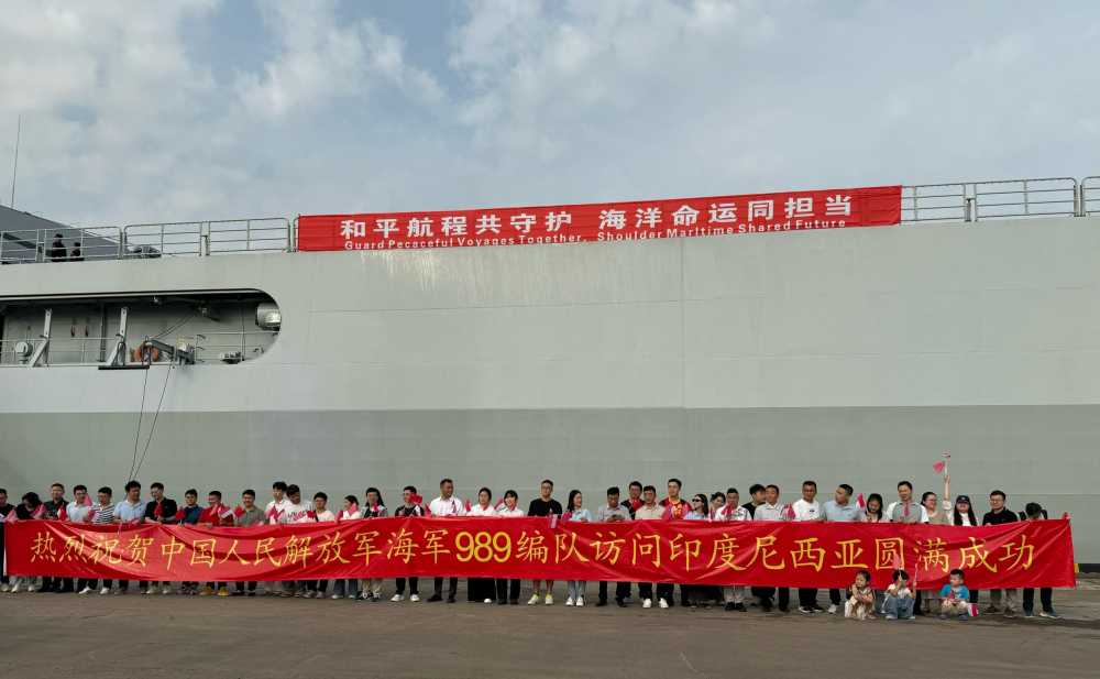 中国驻印尼使馆工作人员、当地中资企业、华侨华人代表和印尼海军官兵代表到码头送行。