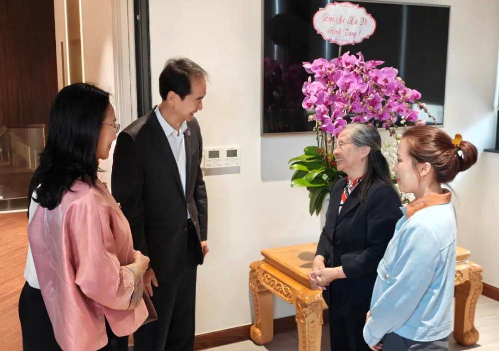 何炜向吴氏敏致以新春祝福,表示中越两国素有“饮水思源”的优良传统,我们深切缅怀阮富仲总书记,就是要见贤思齐,学习他为两国睦邻友好和共同的社会主义事业毕生奉献的品格,继承和弘扬好两国历代领导人亲手缔造和精心维护的特殊友谊,以更加昂扬的斗志和团结合作的精神,推动双边关系在第二个“高光时刻”迈上新台阶,共同告慰先人、造福人民。