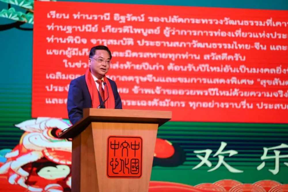 张建卫致辞送上新春祝福并表示,“中泰一家亲”,就要常来常往,亲上加亲,多到彼此国家走走看看,体验“和而不同”的山水和人文。