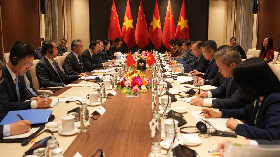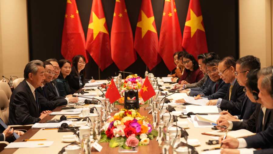 王毅表示,一年之计在于春,中方在中国全国人大、政协“两会”结束后第一时间访越,体现了中越关系的高水平。今年1月越共十四大召开后,中共中央总书记、中国国家主席习近平同越共中央总书记苏林及时通话,一致同意要开好中越外交、国防、公安“3+3”战略对话机制首次部长级会议和双边合作指导委员会第十七次会议。遵照两党最高领导人战略共识,我们应通过这两个重要机制会议,深入探讨统筹发展与安全两件大事,明确走好社会主义道路的重要举措,向国际社会发出中越团结互信、携手前行的积极信号。