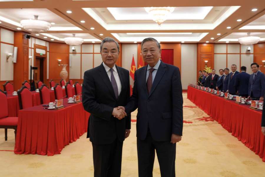 王毅首先转达习近平对苏林的亲切问候,再次祝贺越共十四大胜利召开,表示去年以来,两党最高领导人保持战略沟通,引领中越关系在世界变局中坚毅前行。相信在以苏林总书记为首的新一届越共中央领导下,越南人民将不断开拓民族发展新纪元,如期实现建党建国百年目标。