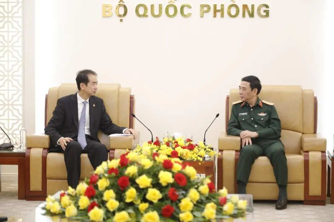 AseanAll /东盟全景讯 中国驻越南大使馆消息,4月6日,中国驻越南大使何炜拜会越共中央政治局委员、越南国防部长潘文江。