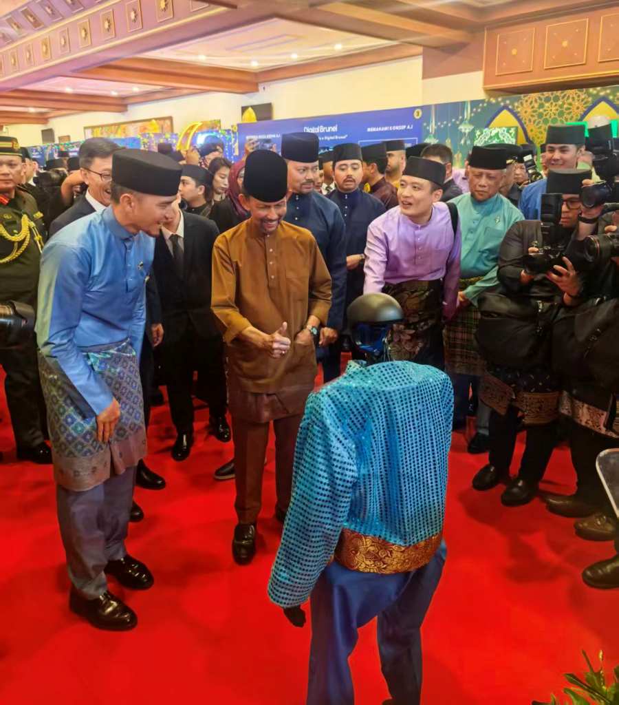 AseanAll /东盟全景讯 中国驻文莱大使馆消息,2026年4月4日,文莱苏丹基金会开斋节庆祝大会在文莱国际会议中心隆重举行,文莱苏丹哈桑纳尔,文莱王储兼首相府高级部长比拉等王室成员,文莱国家各部门高级官员和各界代表2000余人出席。中国国产具身智能机器人首次亮相文莱并参与庆典展演。中国驻文莱大使陈少春应邀出席活动并陪同苏丹等贵宾巡展。