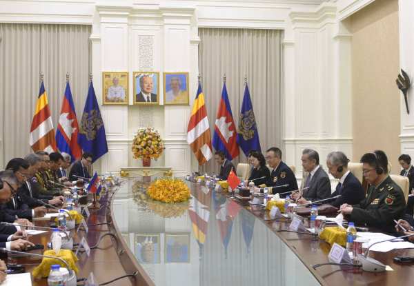 王毅转达中国领导人的良好祝愿,表示中柬是以心相交的真朋友、可长可久的好伙伴,两国友谊历经考验、历久弥坚,堪称铁杆、牢不可破。去年习近平主席历史性访柬,引领两国关系迈入构建新时代全天候中柬命运共同体新阶段。面对风高浪急、乱象丛生的外部环境,中柬两国比以往任何时候都更需要加强团结协作。中方将遵照习近平主席同柬领导人达成的重要共识,开好中柬外长、防长“2+2”战略对话机制首次会议,统筹发展与安全两件大事,坚守民生与人心两个根本,全力排除外部干扰,不断深化战略互信,推进全方位合作,助力各自国家的发展振兴和长治久安。