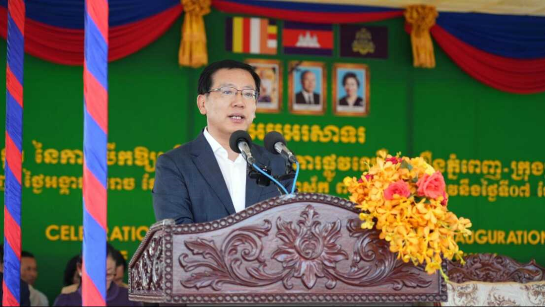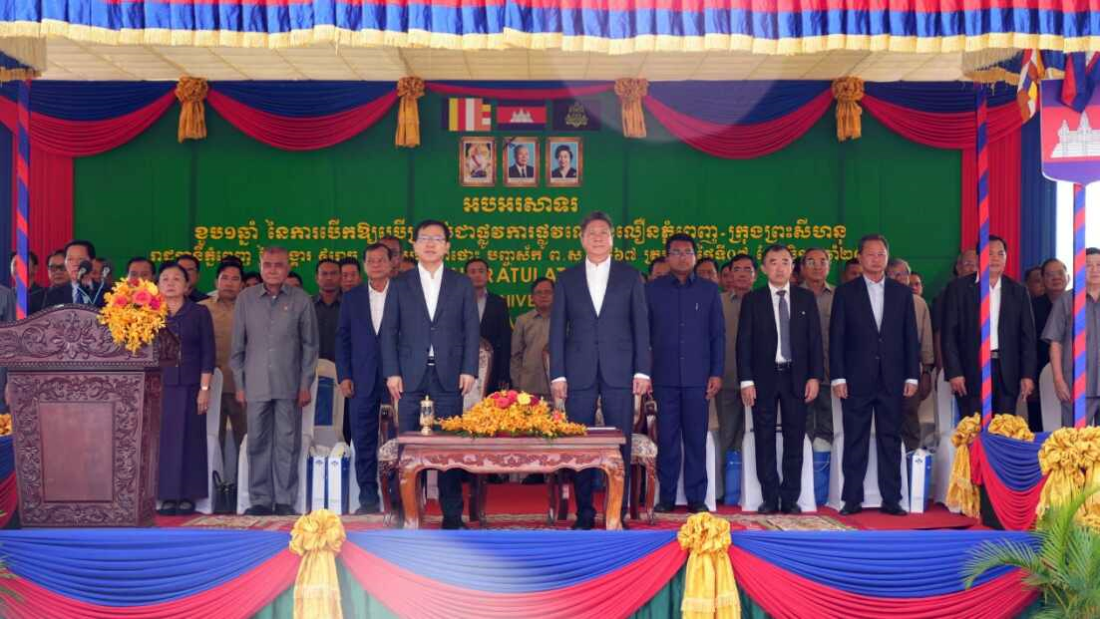 据中国驻柬埔寨大使馆消息,中国驻柬埔寨大使王文天和孙占托副首相共同出席庆典,柬公共工程和运输部大臣宾波尼、中国驻柬使馆参赞钟洁等参加。