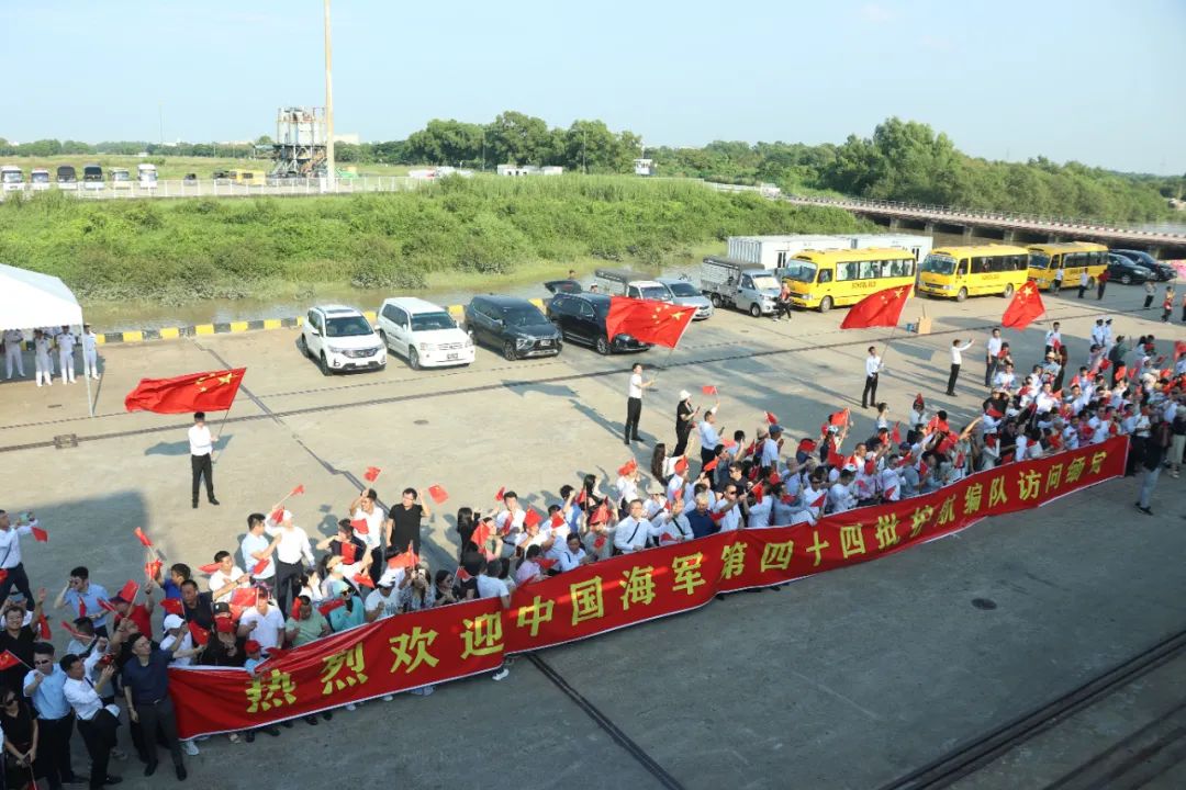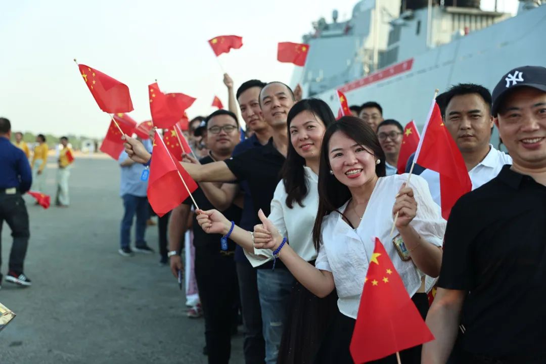 中国驻缅甸大使陈海携中国使馆工作人员,缅甸海军船坞基地司令佐温少将携缅官兵代表,以及中资企业、华人华侨等约500人到码头迎接。