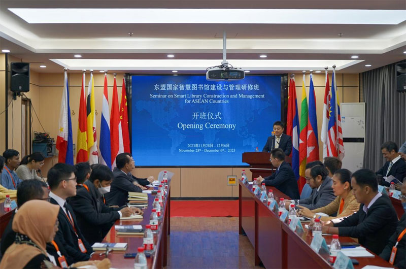 AseanAll /东盟全景讯 中国—东盟中心消息,2023年11月28日,由中国—东盟中心指导支持的东盟国家智慧图书馆建设与管理研修班在北京正式开班。