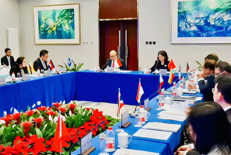 会议由中国外交部亚洲司于红大使与东盟轮值主席国印度尼西亚驻华使馆公使裴连杰共同主持。文莱驻华大使拉赫玛尼、缅甸驻华大使吴丁貌瑞、老挝驻华使馆临时代办通沙万、泰国驻华使馆临时代办本杰明及东盟各国驻华使馆代表,中国外交部、商务部、教育部、文化和旅游部、贸促会等联合执行委员会中方成员单位代表、中心秘书处官员等出席。