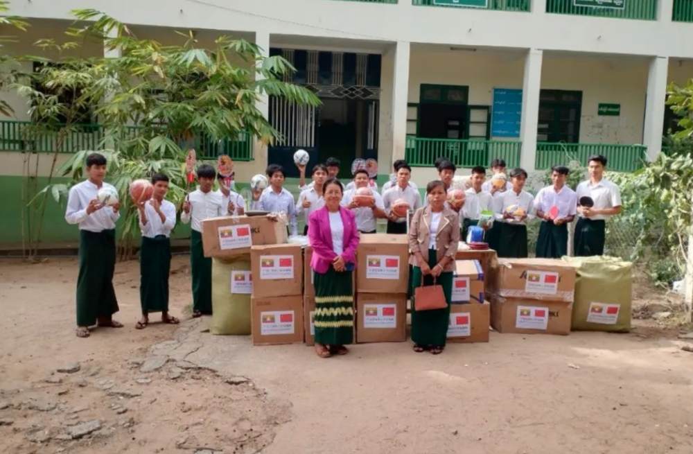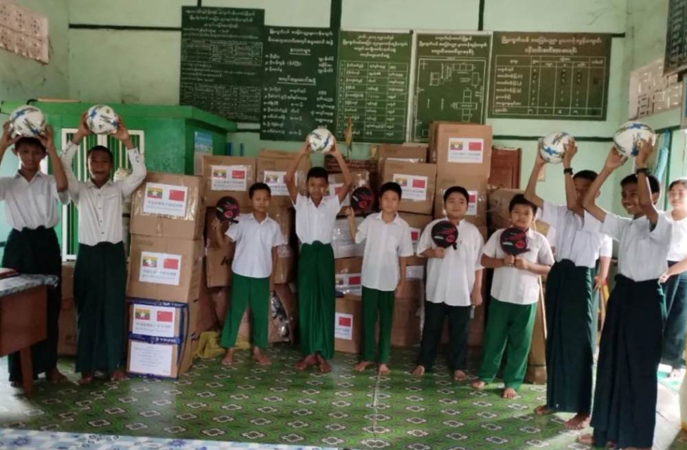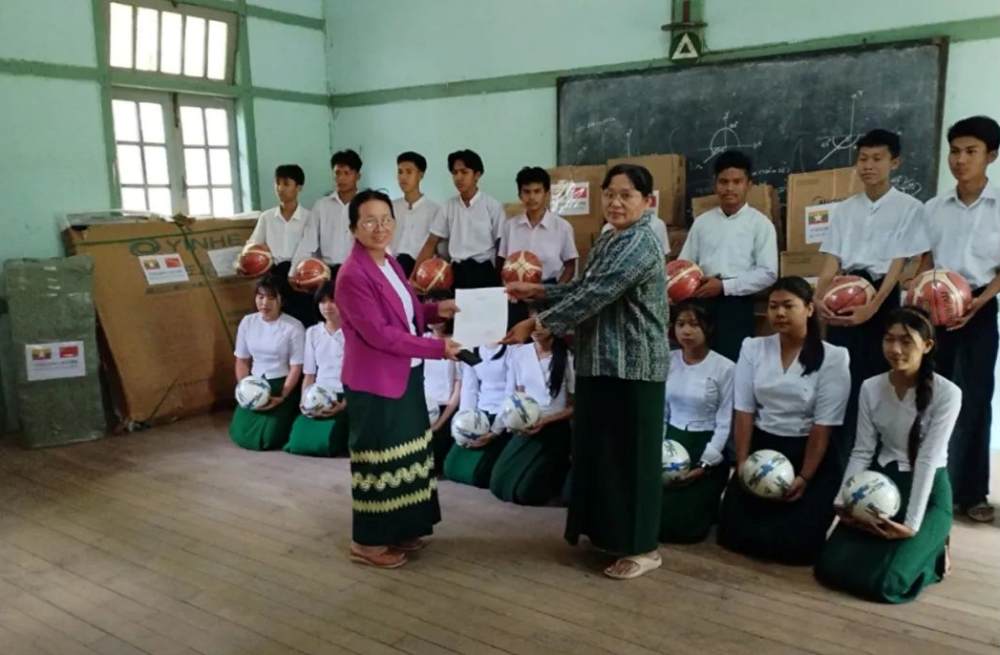 AseanAll /东盟全景讯 中国驻缅甸大使馆消息,2023年12月11日,中国驻缅甸大使馆向缅甸曼德勒省良乌县皎博当镇区第一中学、第二中学、城东中学和城中新区初级中学4所中缅友谊学校捐赠壁挂式电扇、自动打铃仪、乒乓球桌、足球、排球、羽毛球等文体用品。